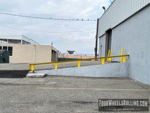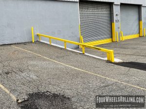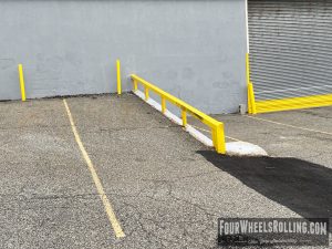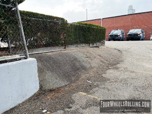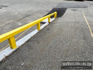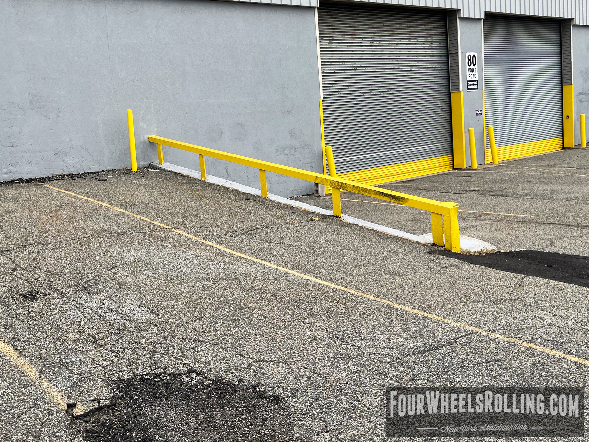 Description: Located at the entrance of the Funstore building are two sketchy spots. There is a bank with a metal square rail alongside it. At the walkway entrance, there is a little bank. Bring a broom.