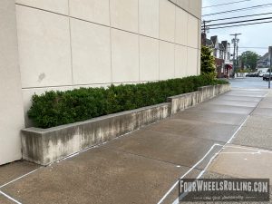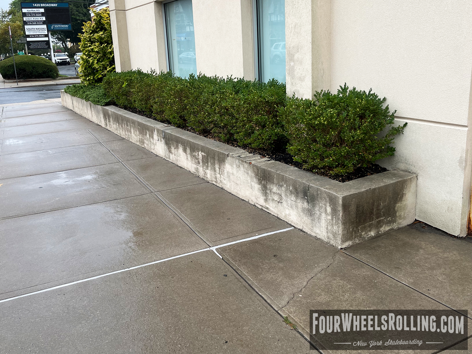 Description: Located at the corner of Erick Ave and Broadway are a few sections of ledges ranging in various heights.