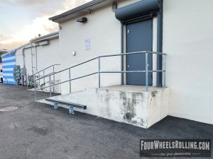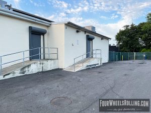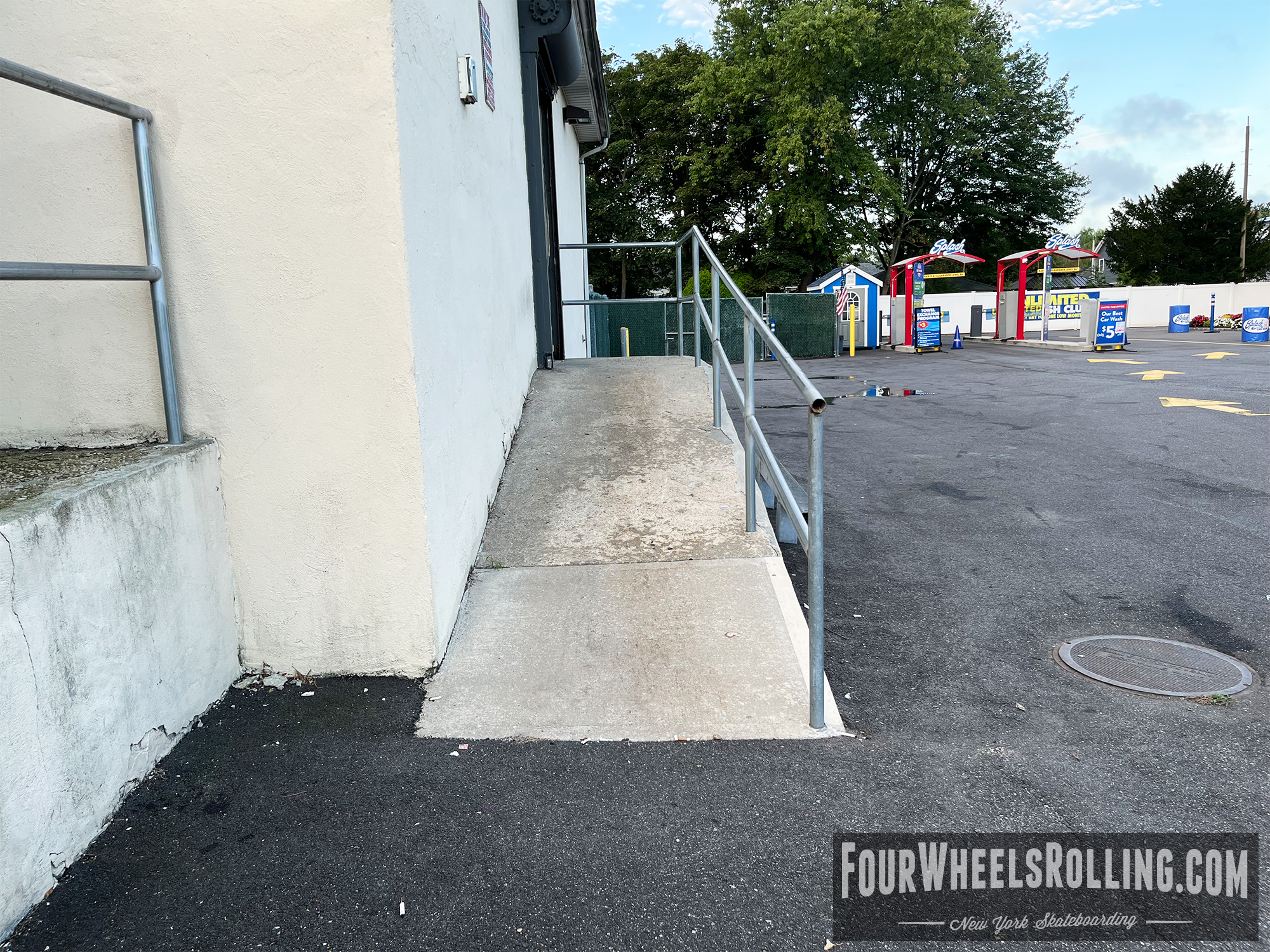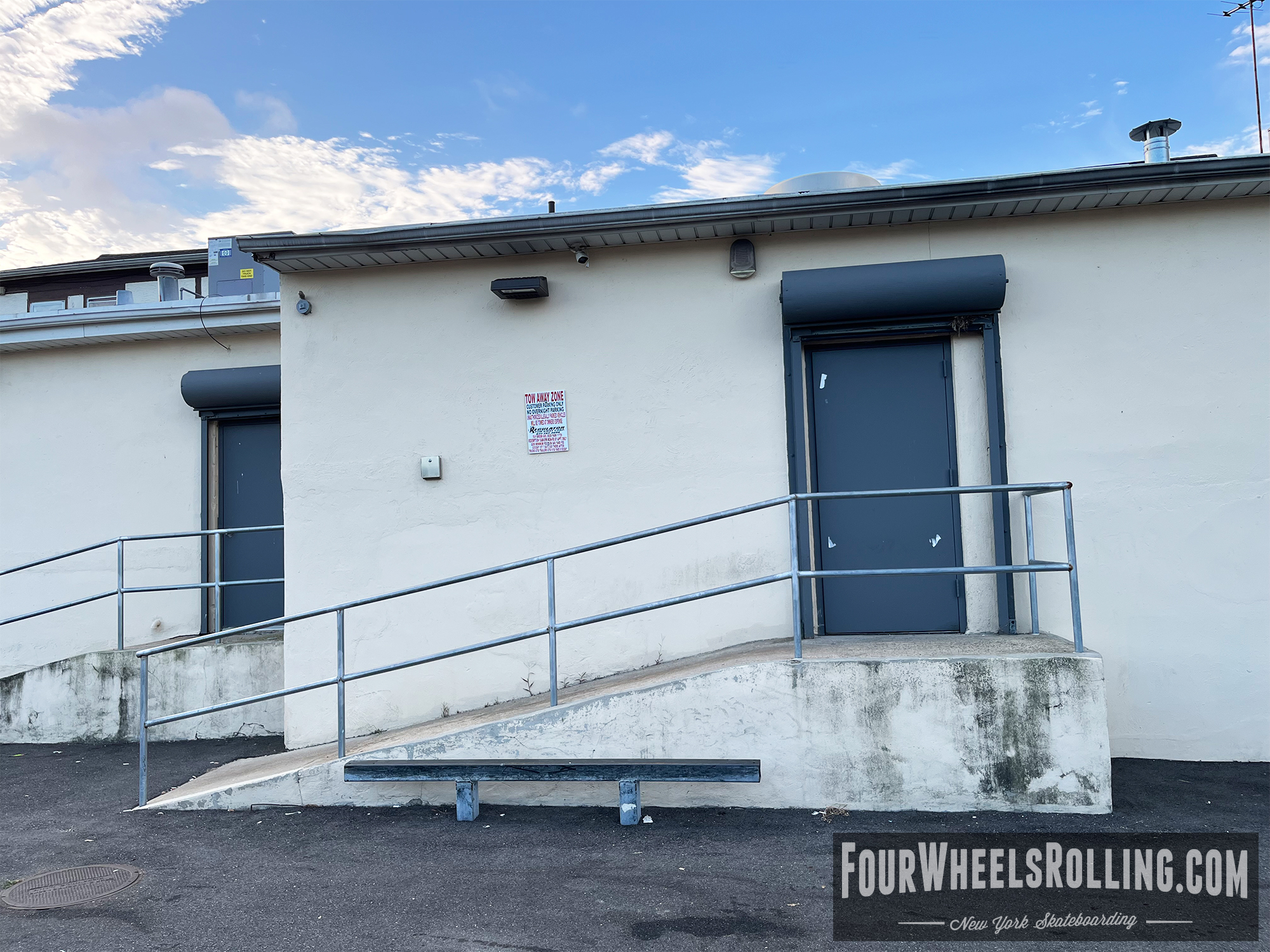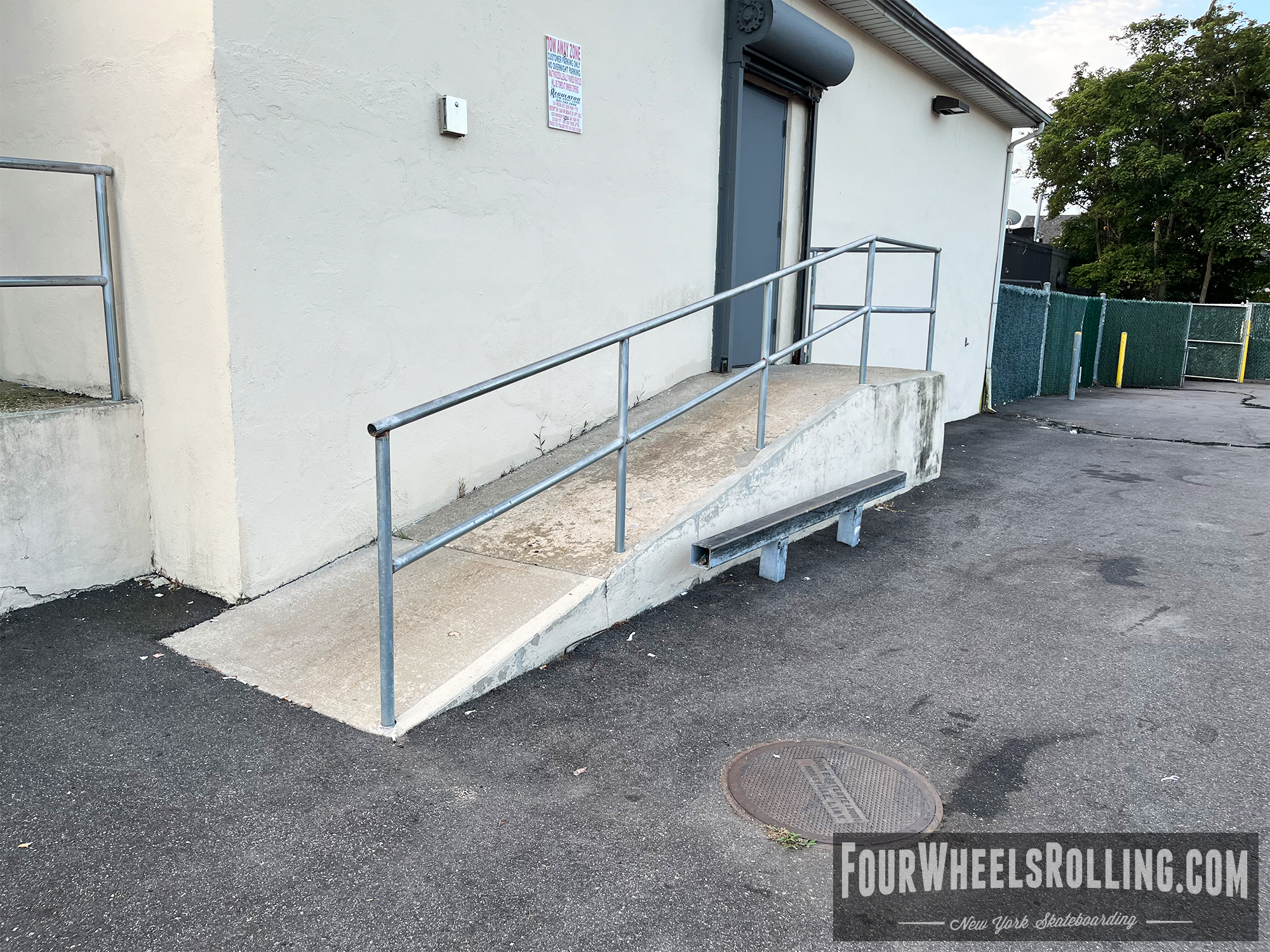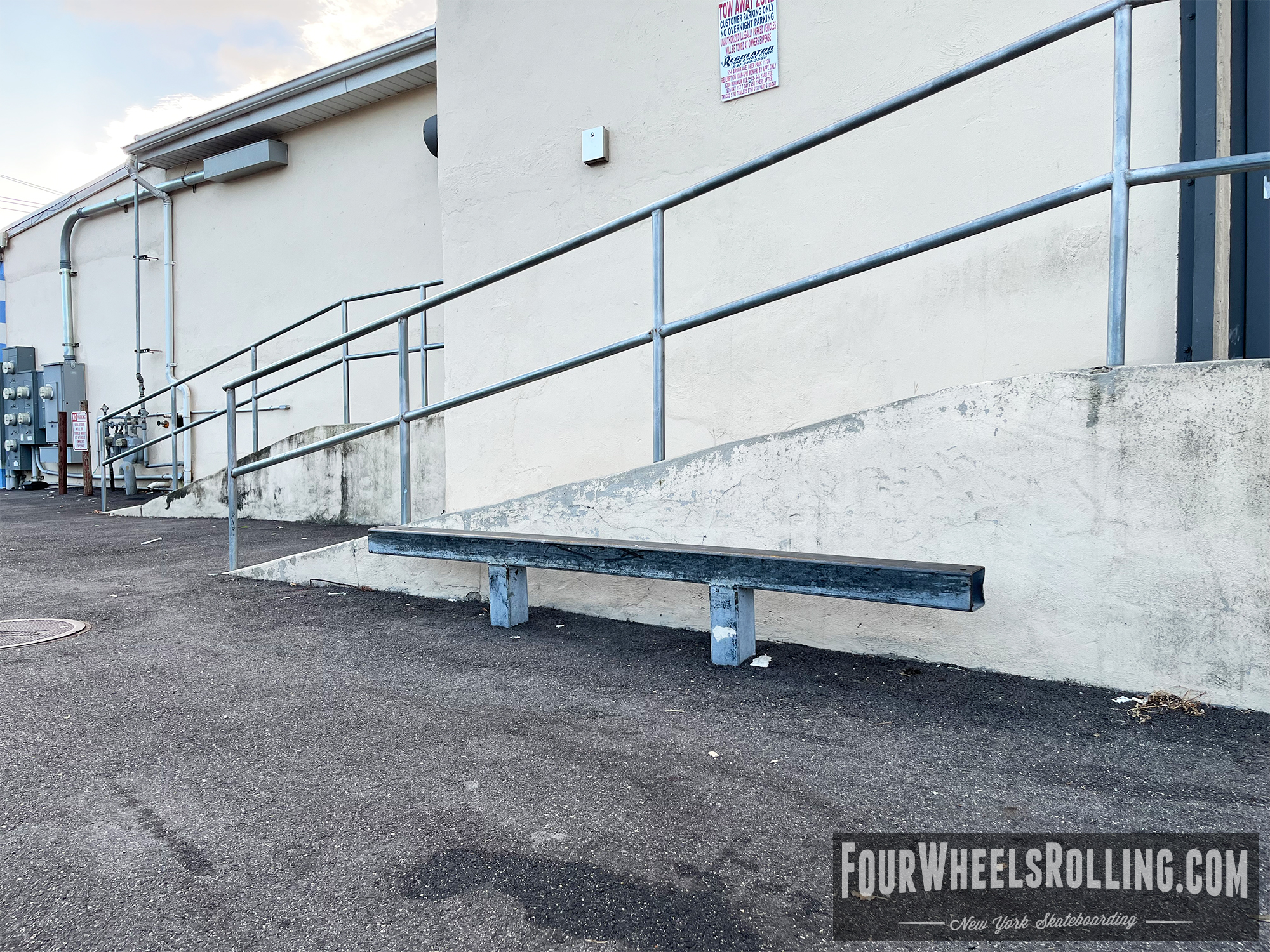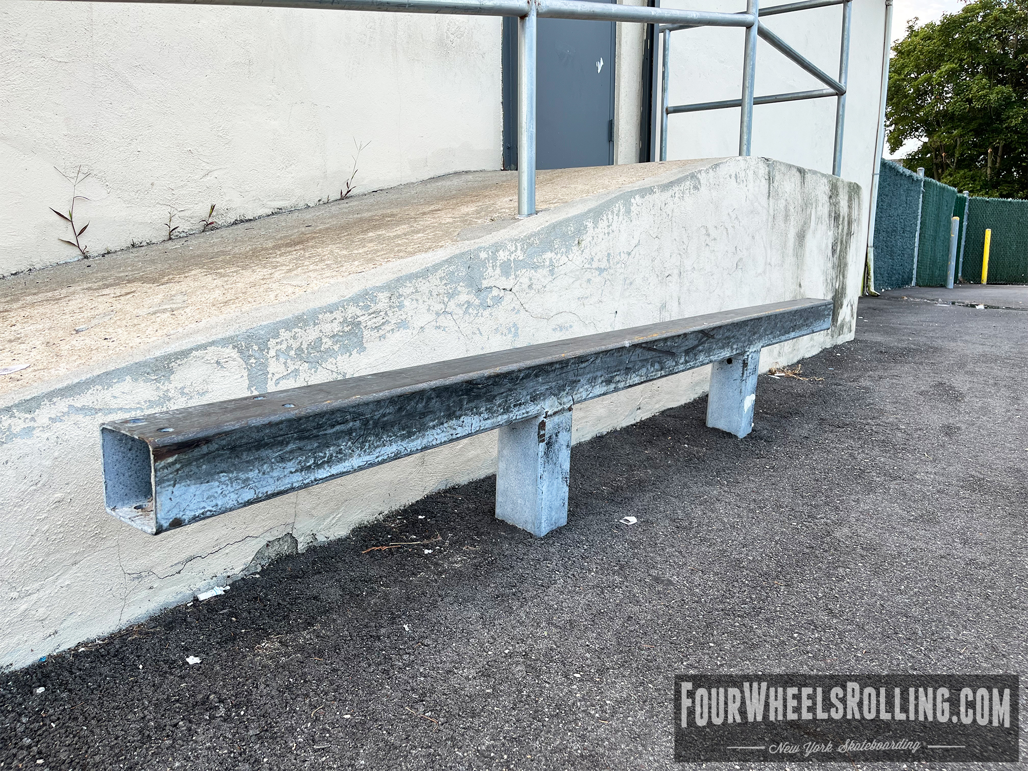 Description: Located behind the ice cream shop is a square metal flatbar and a big bump to bar.