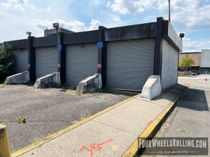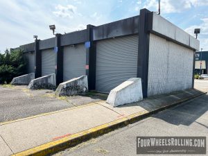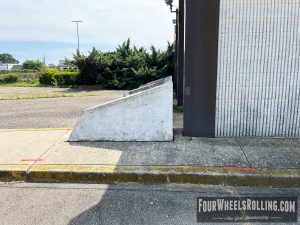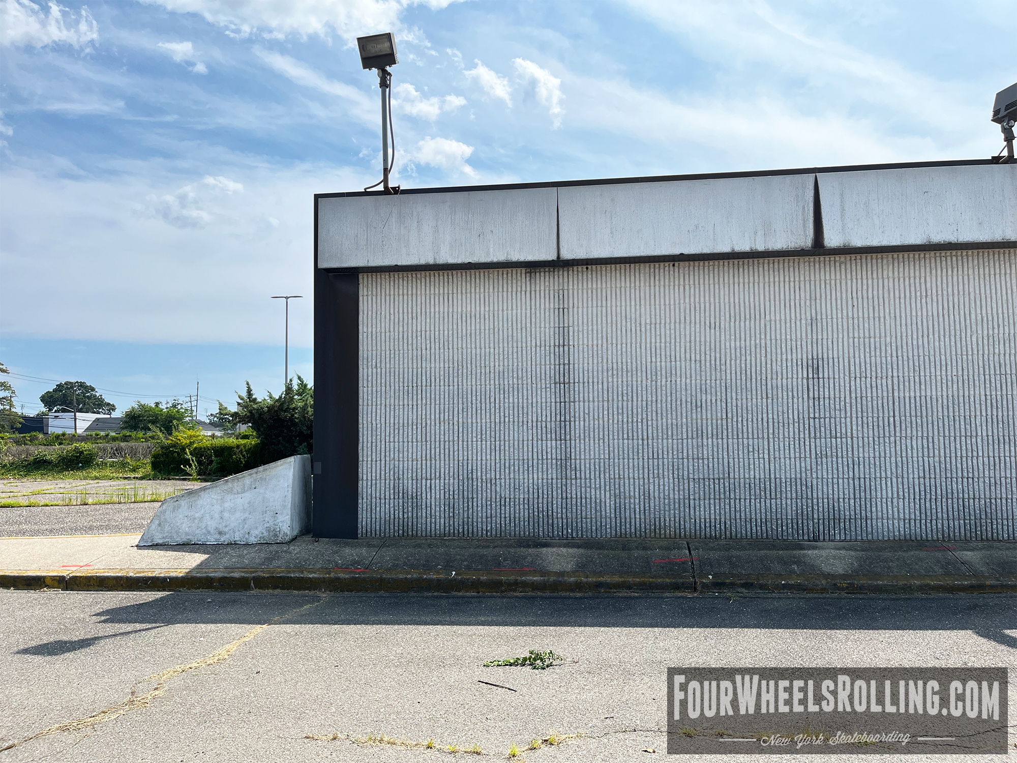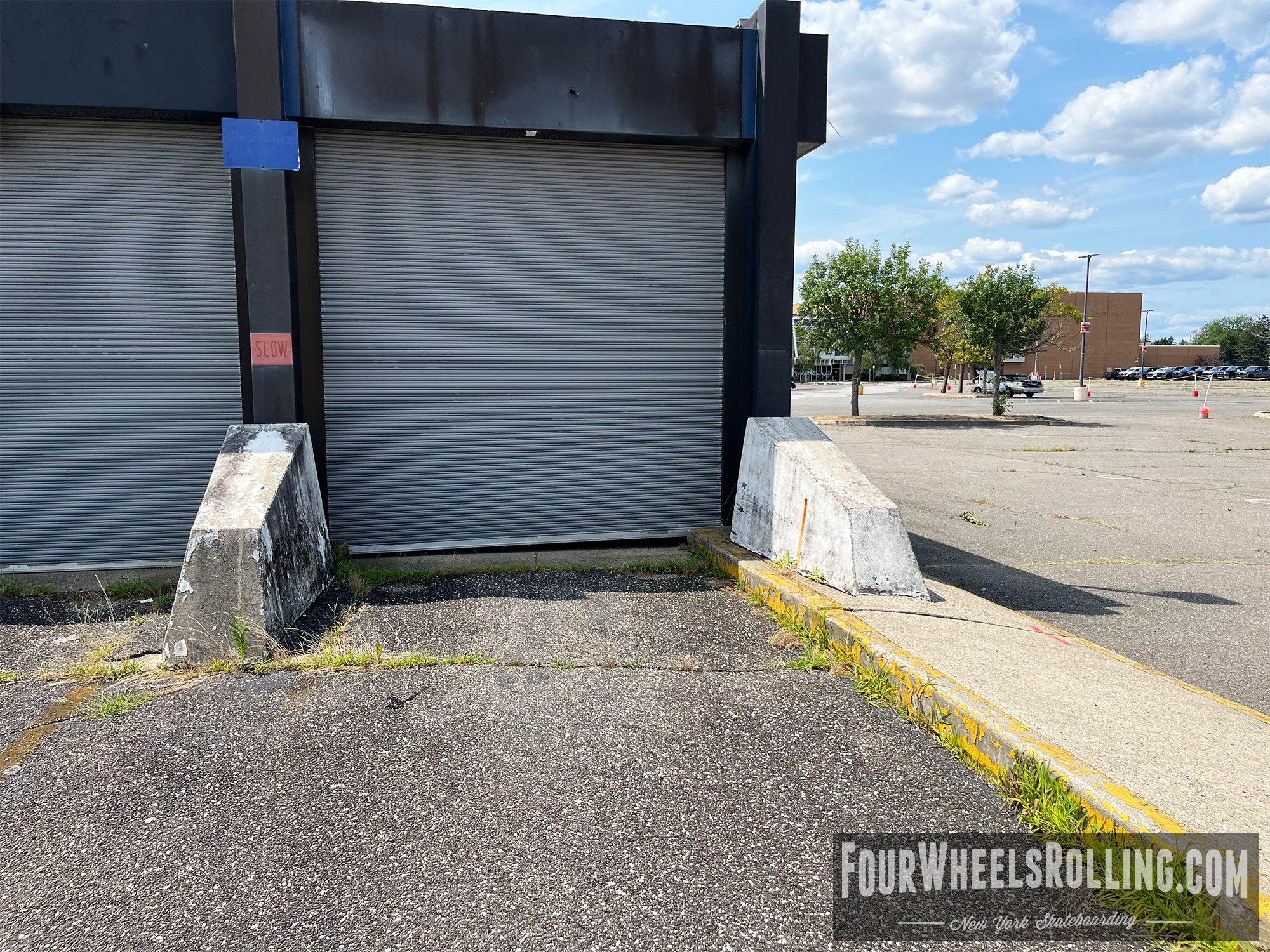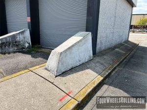 Description: Located at the closed car service shop are high inclined ledges. Only one is skatable if you’re able to navigate it.