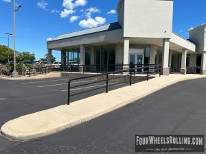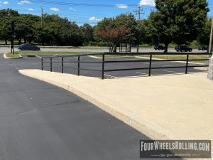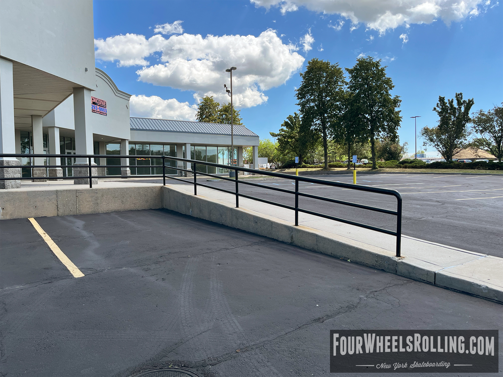 Description: Located at the closed store parking lot is a high and long downrail.