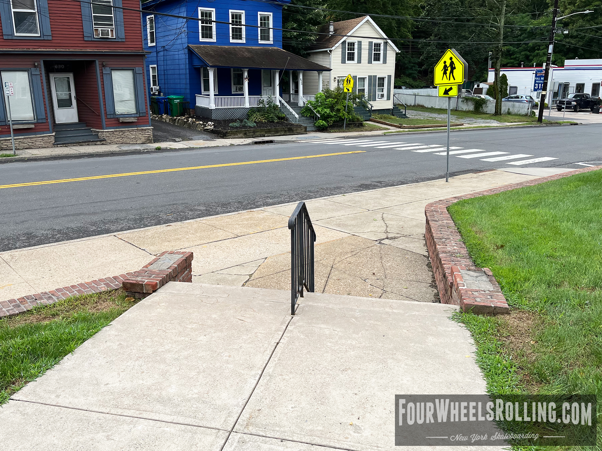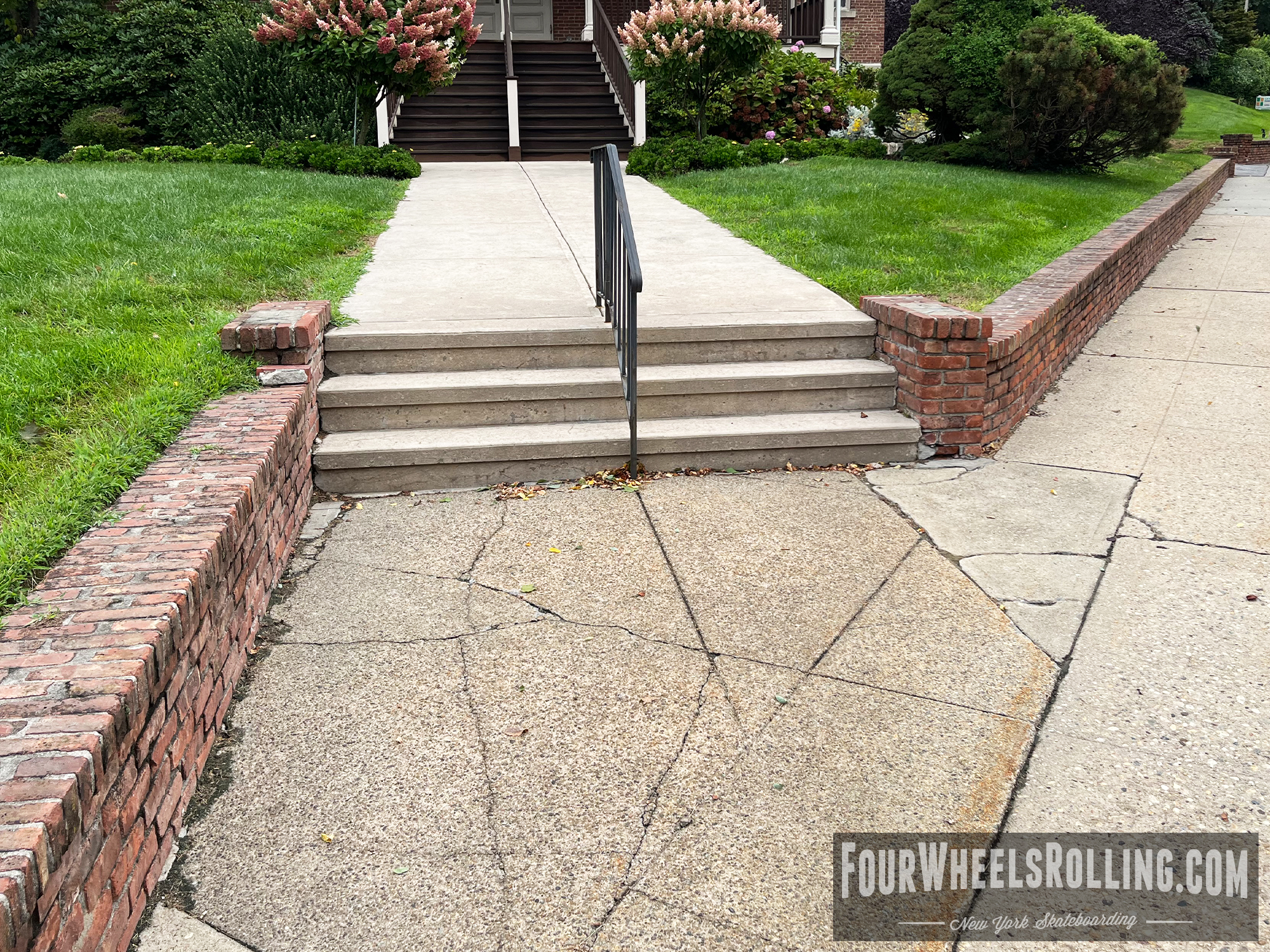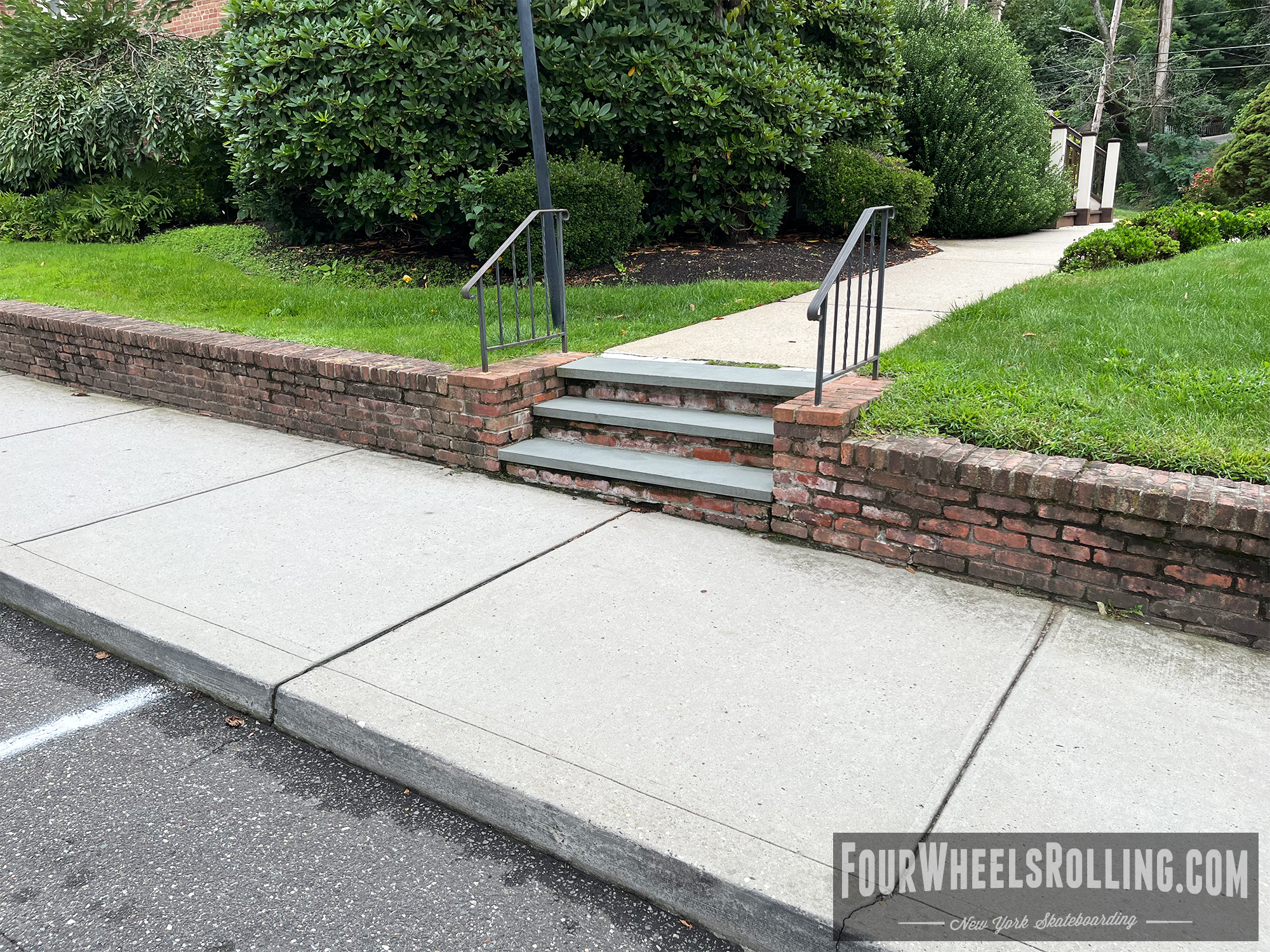 Description: Located at the entrance of the church is a 3 flat and 3 set. There is a crack before the 3 flat and the landing goes into Myrtle Ave. so watch for cars.