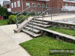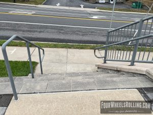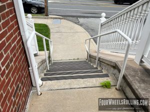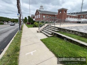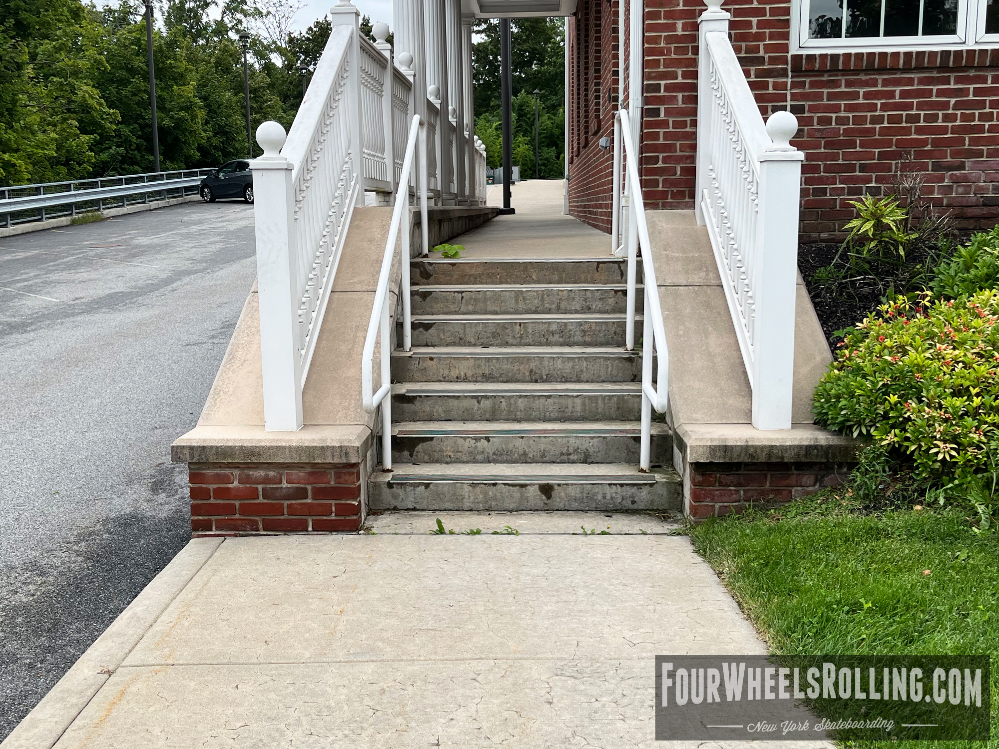 Description: Located at the fire department on the corner of Main St. and Old Town Rd. is a 6 & 7 set. Both sets have handrails but the landings go into the main road. The 7 does have more roll away than the 6.